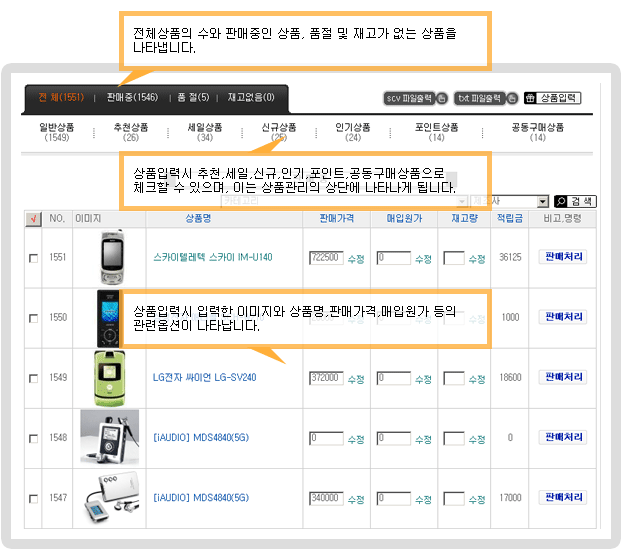 ¼îÇθô°ü¸®ÀÚ°¡ »óǰÀԷ½óª, ¼öÁ¤,»èÁ¦, ÀԷ»óǰ°Ë»öµîÀÇ »óǰ°ü¸®ÀÇ ÀϹÝÀûÀÎ »çÇ×À» ½±°í Æí¸®ÇÏ°Ô °ü¸®ÇÒ ¼ö ÀÖµµ·Ï Á¢±ÙÀÌ Æí¾È ÀÎÅÍÆäÀ̽º¸¦ Áö¿øÇÏ¿©, »óǰ°ü¸®¿¡ ÀÖ¾î Á¶±Ý´õ È¿À²ÀûÀ̰Բû ±¸¼ºÇÏ¿´½À´Ï´Ù.